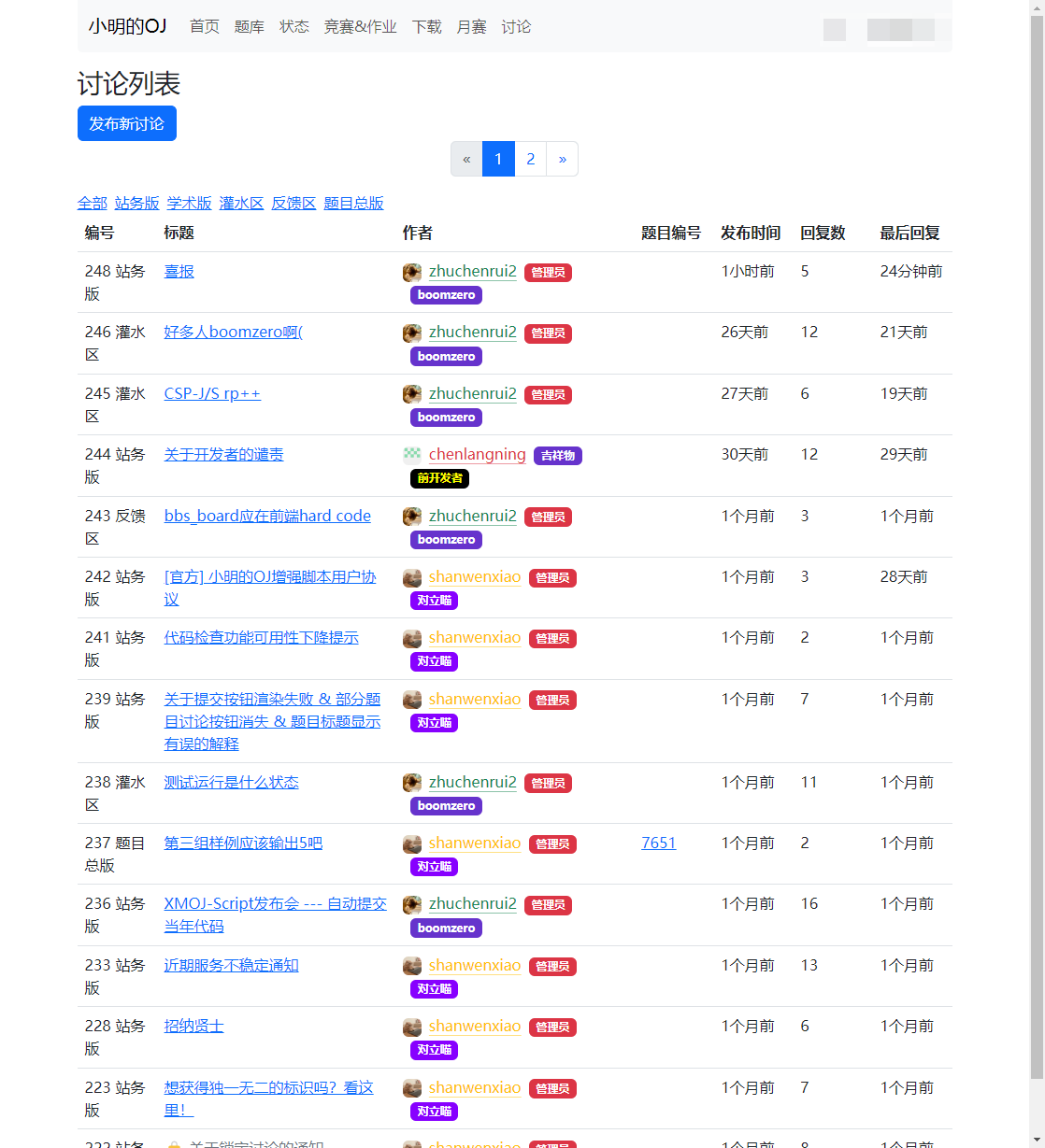 小明的OJ增强脚本 (XMOJ-Script) 在多个方面提供了有益的功能和改进。 首先,通过比赛ACM排名和下载功能,用户可以更方便地浏览比赛的排名情况,并且能够将相关信息下载以备离线查阅,这对于参赛者和观众来说都是一项实用的功能。 界面美化方面,采用新版的Bootstrap样式库、彩色文字和暗色模式等,能够显著提升用户界面的视觉吸引力和舒适度。